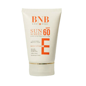 Introducing our BNB Sun Screen with SPF-60 & Vitamin E, offering powerful and instant protection against both UVA and UVB rays. Enriched with vitamin E, it provides nourishing care while ensuring mild and non-greasy coverage. Keep your skin safeguarded and cared for with our SPF-60 formula.