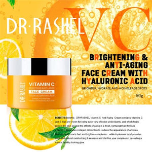 DR·RASHEL Vitamin C face cream contains vitamins C and E that are known for being such very effective antioxidants, and which helps protect the skin against the effects of aging. is a fresh, lightweight gel formula ,Vitamin C stimulates collagen production to reduce the appearance of wrinkles, fine lines and crow’s feet and brighten complexion . while Hyaluronic Acid provides deep and natural moisturizing, it awakens and clarifies your complexion, revealing a natural healthy looking glow.